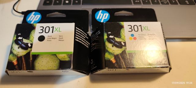 Pack de dos cartuchos de tinta HP 301XL, uno negro y otro tricolor. - Cartucho HP 301XL Negro. - Cartucho HP 301XL Tricolor.