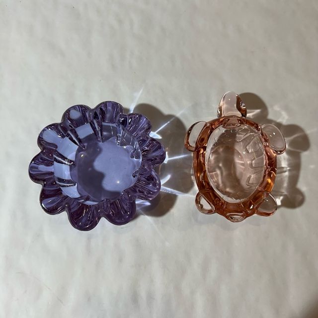 Son piezas de vidrio macizo, muy decorativas. Ideales para usar como ceniceros, joyeros, portavelas o simplemente como decoración retro. Están en muy buen estado.
