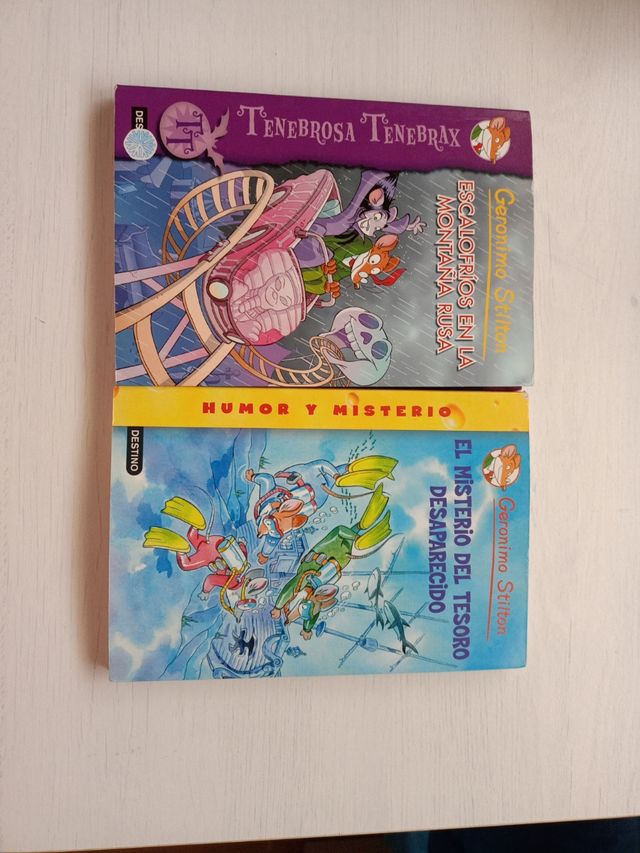 2 Libros de Gerónimo Stilton: ESCALOFRÍOS EN LA MONTAÑA y EL MISTERIO DEL TESORO DESAPARECIDO.No se venden por separado.