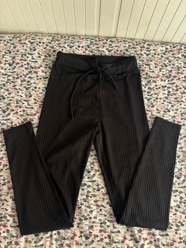 Pack de dos mallas ajustadas de color negro. Una es malla de rayas y la otra es mas tipo chandal y es aterciopelada