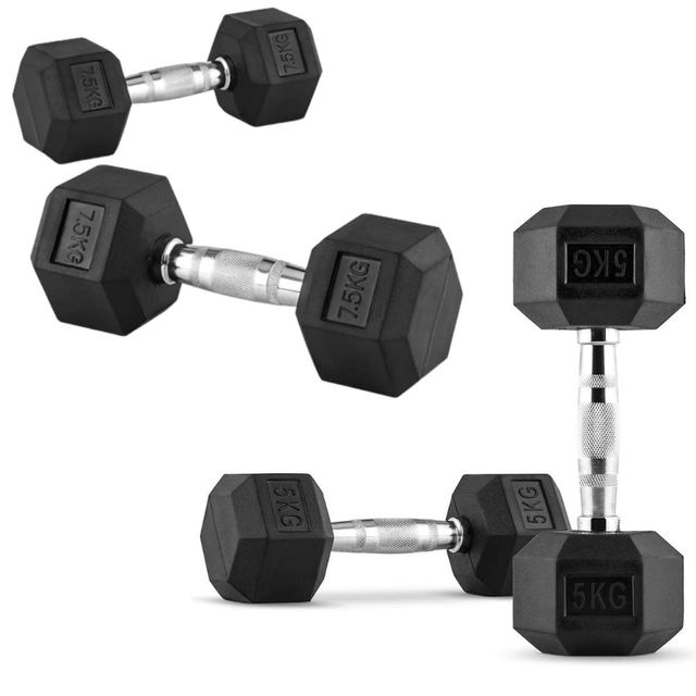 Pack 2 Mancuernas hexagonales de 7,5 kg y 2 mancuernas hexagonales de 5 kg. NUEVAS A ESTRENAR