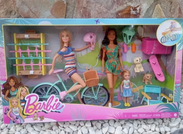 Detalles del productoIncluye dos muñecas Barbie, Chelsea, una bicicleta, accesorios para el deporte y mascotas.