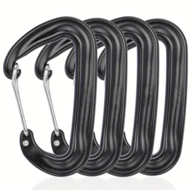 Se venden mosquetones negros para red de voley playa. Son resistentes, ideales para los tensores.