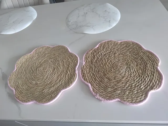 Pack 2 Salvamanteles Yute Rosa Beige festoneados