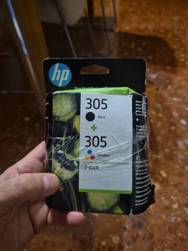 Pack de dos cartuchos de tinta HP 305. - Un cartucho de tinta negra. - Un cartucho de tinta tricolor.