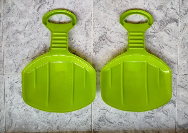 Pack de dos trineos pala de color verde, perfectos para deslizarse por la nieve. - Diseño ergonómico con asa. - Fabricados en plástico resistente.