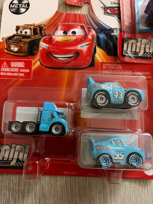 Detalles del productoPack de tres coches de la marca Disney Cars, con temática Dinoco.