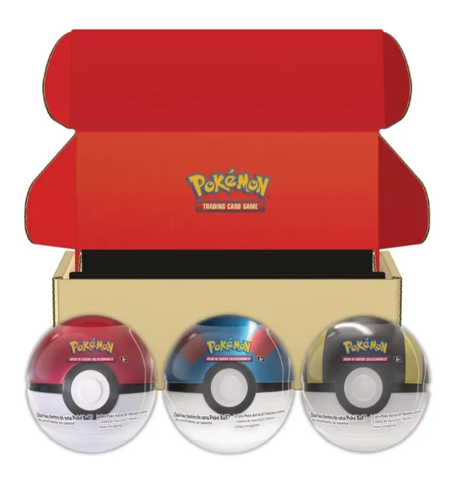 Detalles del productoEste pack incluye 3 latas en forma de Poké Ball, cada una con contenido sorpresa del juego de cartas coleccionables Pokémon.