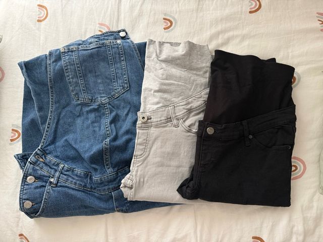 Pack 3 prendas premamá: peto y 2 vaqueros
