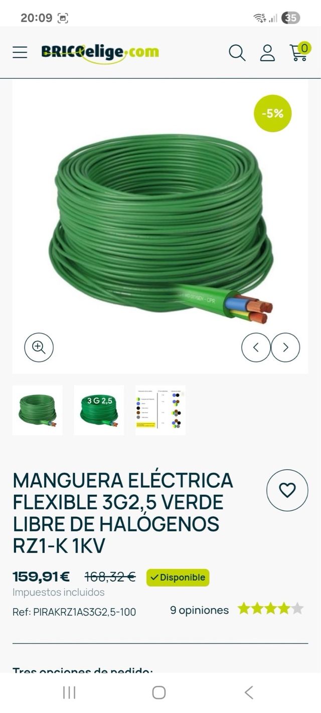 Detalles del productoSe venden tres rollos de manguera eléctrica flexible de 100 metros cada uno.