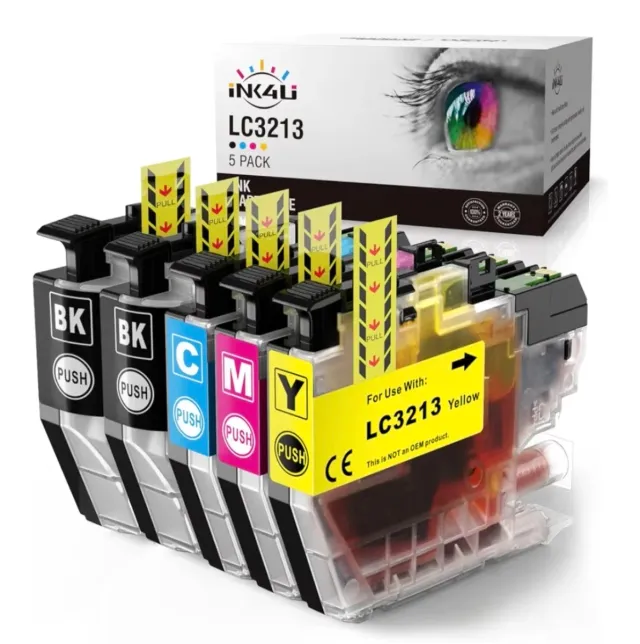 Pack de 4 cartuchos de tinta compatibles para impresoras Brother. - Modelo: LC3213. - Colores incluidos: Negro (x2), Cian, Magenta, Amarillo.