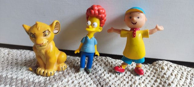 Detalles del productoSe venden 4 figuritas de goma variadas de la película Disney el Rey León, de los pitufos, de los Simpson y de Caillou. Se encuentran en perfecto estado excepto Simba que está muy deteriorado. Precio negociable. También se venden por separado, pregunta por el precio.