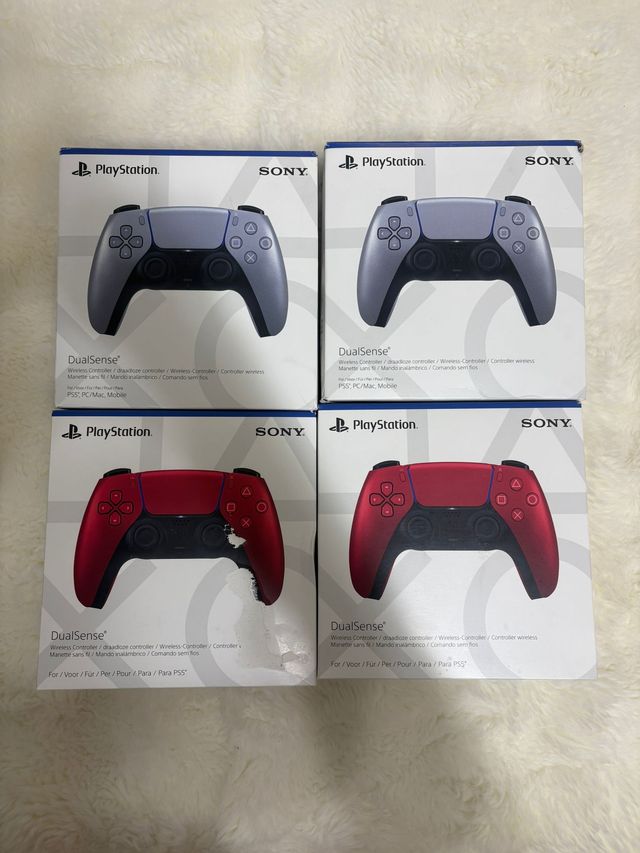 Detalles del productoPack de cuatro mandos DualSense para PlayStation 5. Incluye dos mandos en color gris y dos mandos en color rojo.