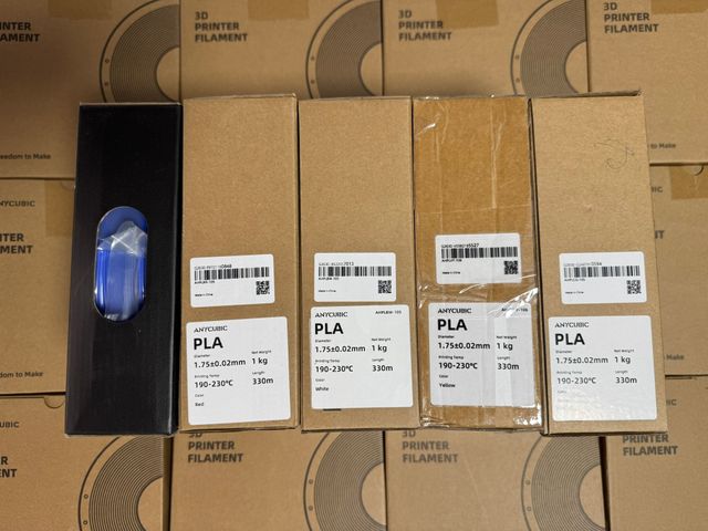 Pack de 5kg de filamento PLA de ANYCUBIC en varios colores.