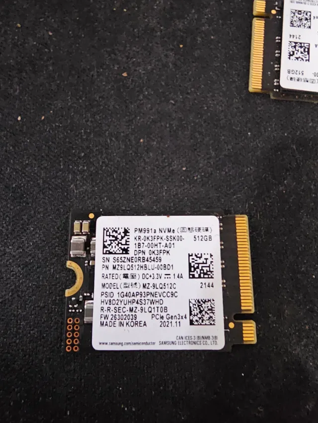 Pack de cinco unidades de estado sólido M.2 NVMe de 512GB. - Modelo: PM991a - Capacidad: 512GB - Interfaz: PCIe Gen3x4 - Fabricado en Corea