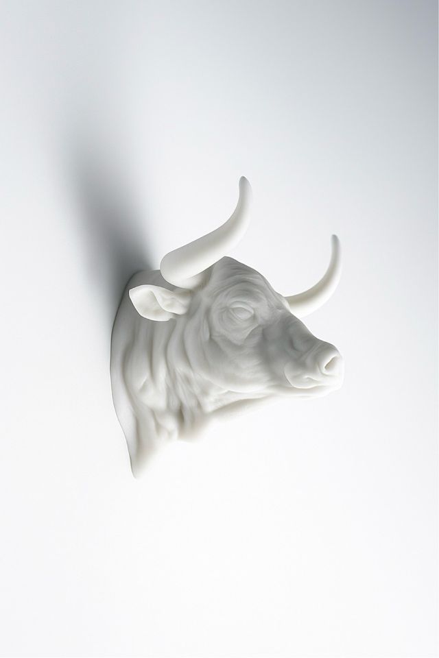 Figura decorativa de cabeza de toro realizada en impresión 3D ideal para decoración o maquetas. -Producto escalable -Resistente y listo para pintar