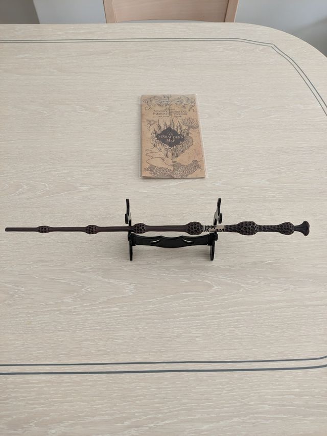 Pack con mapa de merodeador, soporte de varitas y varita de sauco tamaño real.