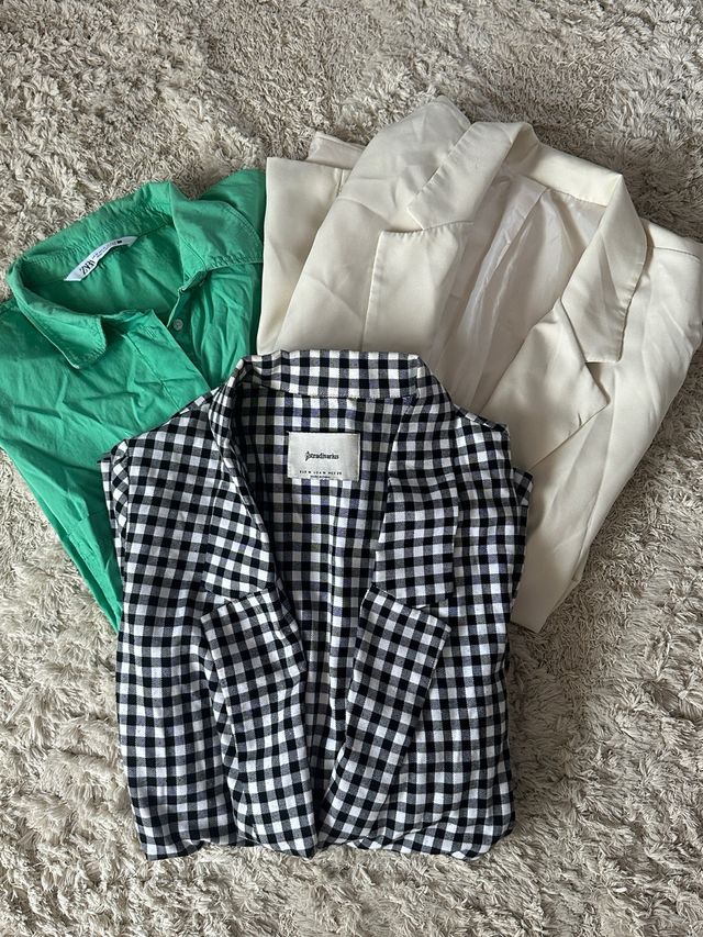 Pack Blazer Beige y vichy + Camisa Verde.