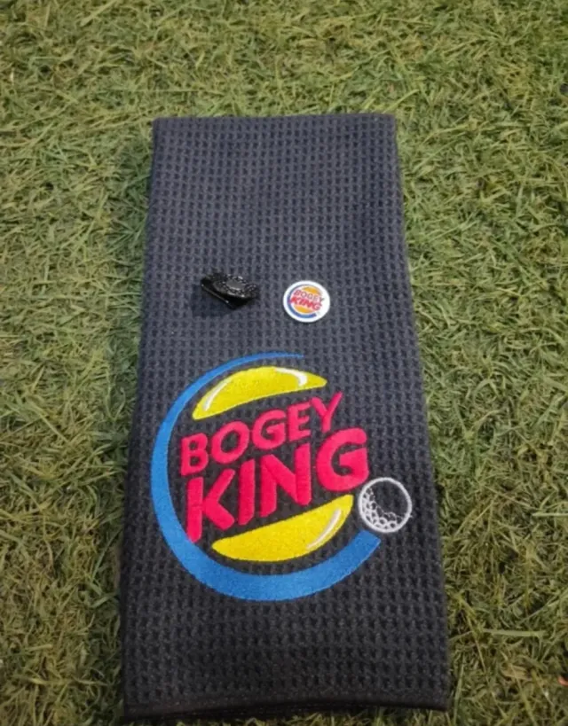Toalla microfibra bordada y marcabolas con clip para la gorra o visera