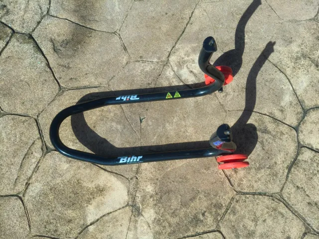 Detalles del productoCaballete Bihr para moto, diseñado para facilitar el mantenimiento y almacenamiento.