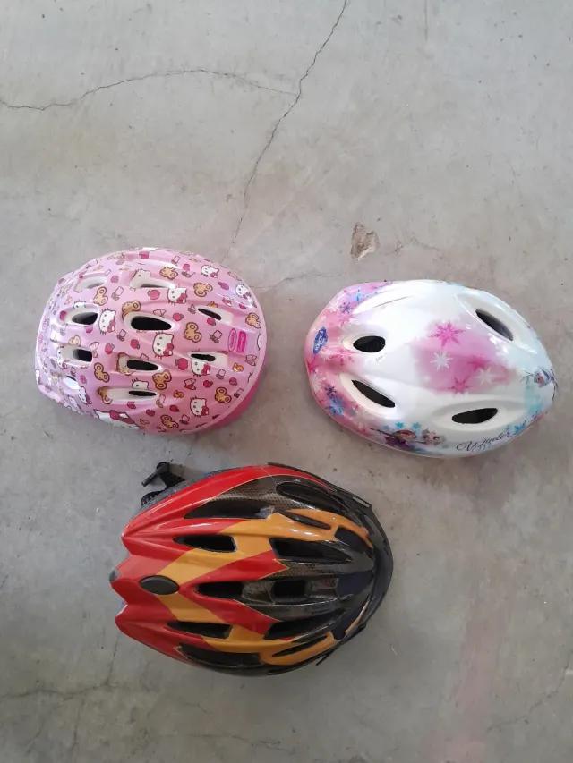 Detalles del productoPack de tres cascos de bicicleta para niños, uno adulto