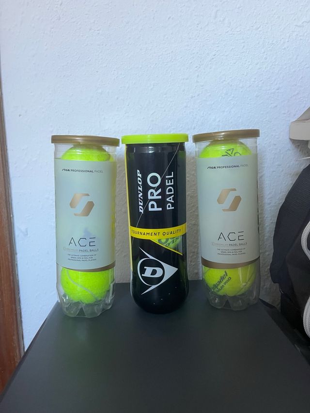 Detalles del productoVendo tres botes de bolas de pádel. Dos son Dunlop Ace y uno es Dunlop Pro. Están nuevas, cada bote trae 3 pelotas.