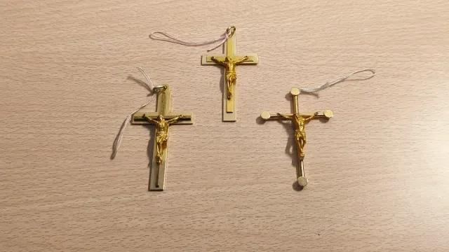 Conjunto de 3 cruces de Jesús para colgar. Son de color dorado, plateado y son antiguos.