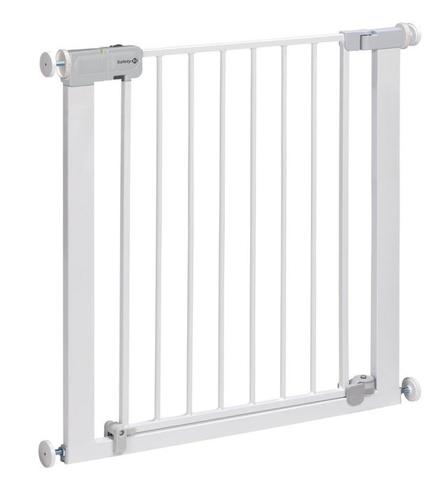 Detalles del producto PACK DE 3 BARRERAS NUEVAS Safety 1st Auto Close, Barrera Seguridad Niños Escalera a Presión, 73–80cm (máx. 136cm), Valla Seguridad Infantil Automática, Apertura Una Mano, Sin Tornillos (Sin Taladros), Doble Bloqueo, Blanca