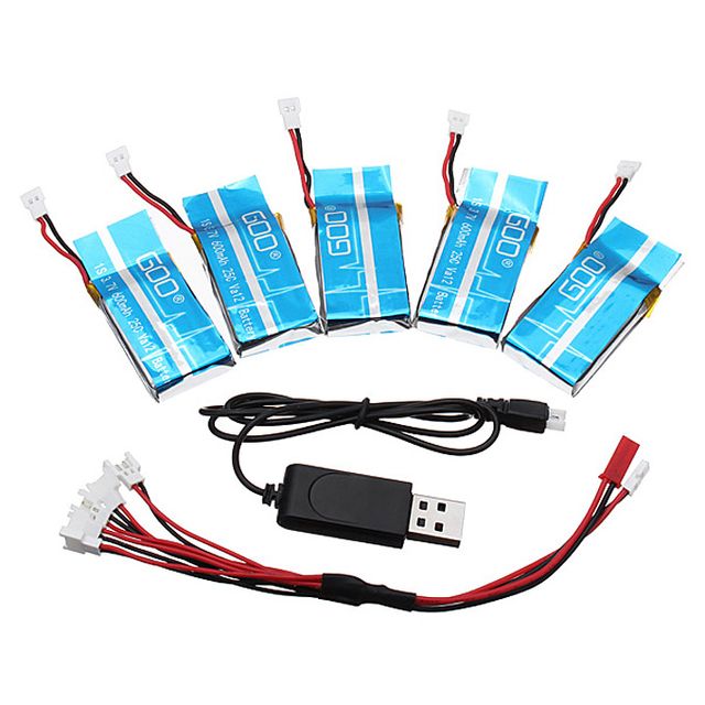 Detalles del productoPack de 5 baterias de 3,7w 600mah con cable de carga usb con 5 salidas para cargar las 5 baterias a la vez. La autonomia de cada bateria es de 10 minutos aproximadamente. Se carga por usb. Realizamos envios por Wallapop y envios contrareembolso. Producto nuevo con 2 años de garantia.