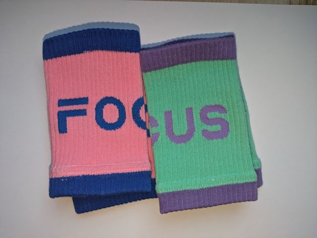 Detalles del productoVendo PACK DOBLE muñequeras ideales para CrossFit y pádel. Modelos Rosa y Verde, con la palabra "FOCUS".