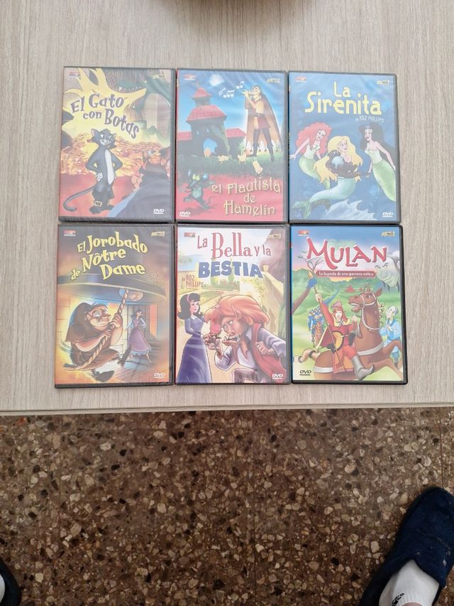 Detalles del producto6 dvds basados en cuentos infantiles - EL JOROBADO DE NOTRE DAME - LA BELLA Y LA BESTIA - MULAN LA LEYENDA - EL FLAUTISTA DE HAMELIN - EL GATO CON BOTAS - LA SIRENITA