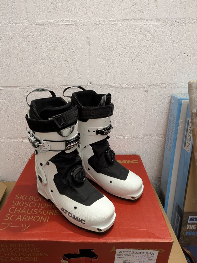 🔹 Esquís: Atomic (157 cm, 78 mm patín) con fijaciones de travesía ya montadas(DYNAFIT). 🔹 Botas: Atomic Backland Expert W, talla 24/24.5(38), ligeras y cómodas, con sistema BOA y modo walk/ski. 🔹 Focas: Contour, a medida para estos esquís, con muy buen agarre y pegado perfecto.