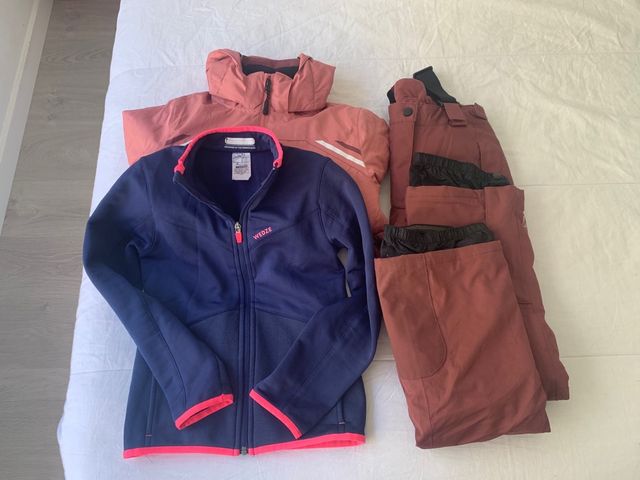 Detalles del productoConjunto de ropa de esquí para niña, talla 9-10 años (134-140cm). Incluye chaqueta, pantalón y polar.