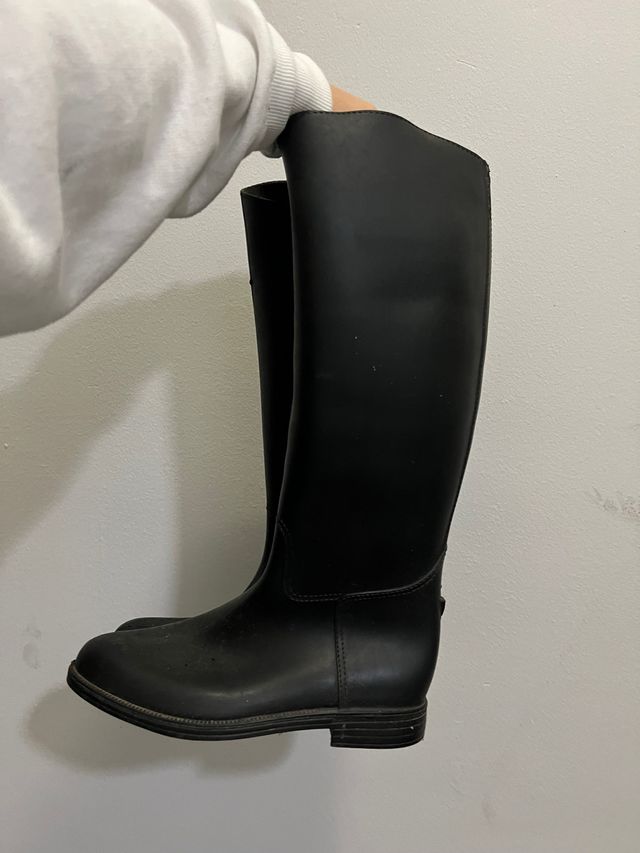 Pack completo para equitación que incluye casco, botas y polainas. - Casco de equitación. - Botas altas de equitación. - Polainas.