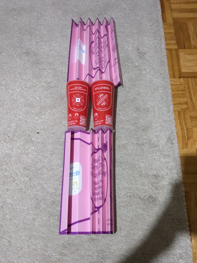 - 2 Vasos plástico oficial de los Juegos Olímpicos Paris 2024, con el logotipo de la competición de Voleyball y de Shooting/Shooting Para Sport