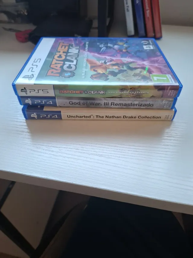 Pack de videojuegos para consolas PlayStation. - Ratchet & Clank: Una Dimensión aparte (PS5) - God of War III Remasterizado (PS4) - Uncharted: The Nathan Drake Collection (PS4)