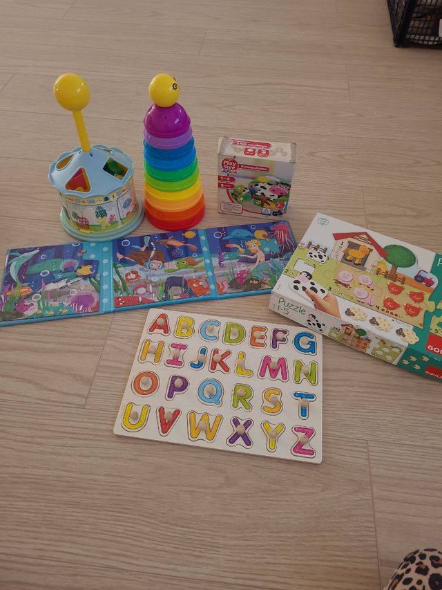 Puzzle de madera, magnéticos, letras, madera, carrusel, cubos de 0,6 meses a 5 años