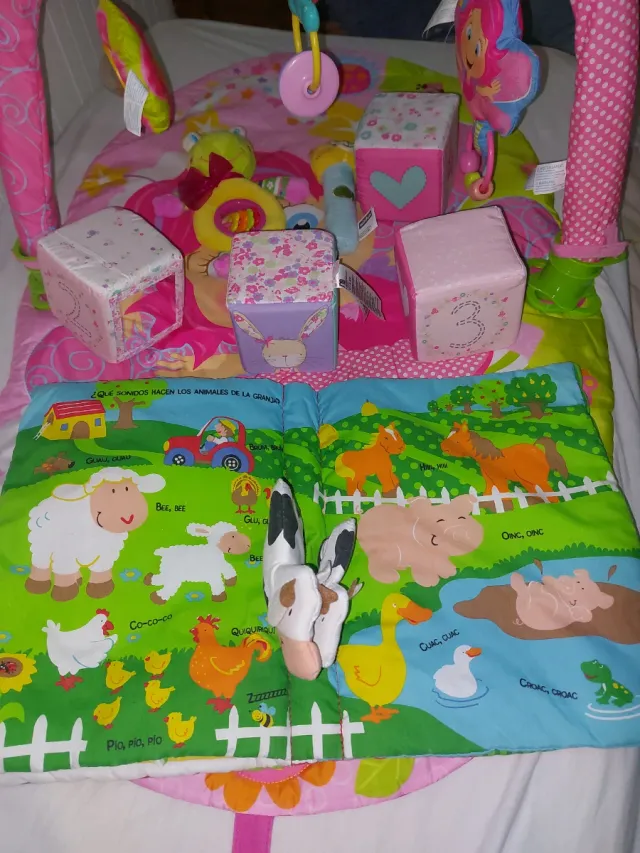 Detalles del productoPack de juguetes para bebé que incluye un gimnasio de actividades y varios bloques blandos.