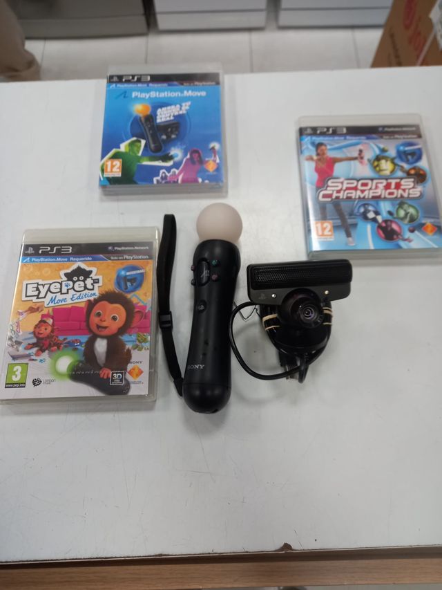 Detalles del productoPack Move para PS3. Incluye 3 videojuegos + cámara + mando move. Producto con garantía. Hacemos envíos a toda España (salvo Canarias, Ceuta y Melilla). Tienda en C/Sambara 101, Madrid. Teléfono 912600555. Síguenos en Facebook e Instagram tutiendadesegundamano. Visita nuestra web tutiendadesegundamano.