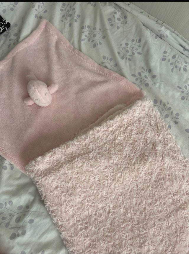 Detalles del productoPack de dos mantas para bebé en color rosa. Una de ellas es lisa y la otra tiene un diseño de rosetas.