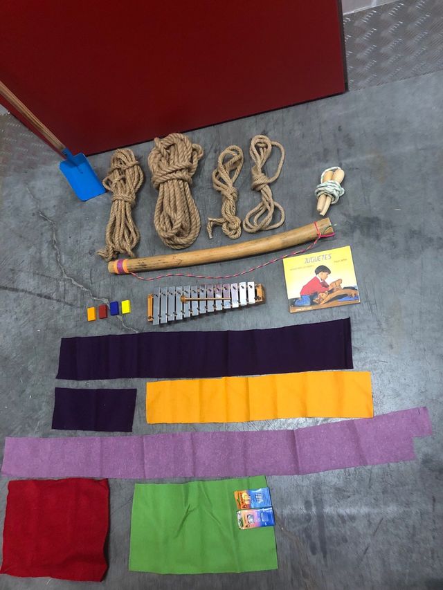 - Cuerdas de comba (material: cáñamo) 2 grandes, 2 individuales, 1 pequeña con agarros de madera