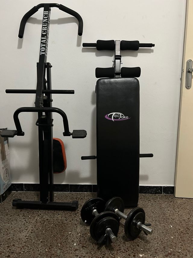 Detalles del productose vende por no darles uso y hacer espacio en casa. Esta en perfecto estado menos el asiento del total crunch que esta un poco arañado del gato, por eso el precio.