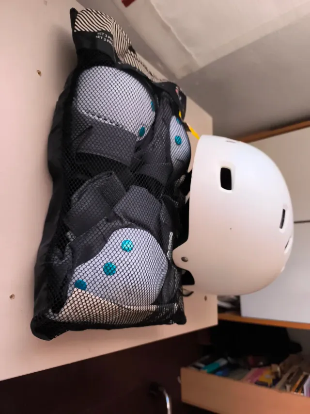 Detalles del productoPack de protecciones para patinaje que incluye casco y rodilleras/coderas.