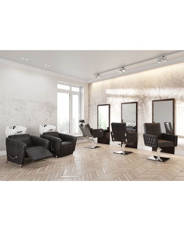 Detalles del productoBLACK FRIDAY ! Descuento aplicado 10%. Contiene : 2 lavacabezas con perneras elevables, cerámica negra, 2 sillas de corte, 1 silla de corte con inclinación del asiento, 3 tocadores. Tapizado marrón chocolate con detalles de capitone en las laterales.