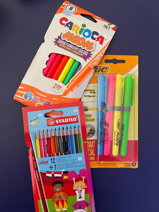 Pack pinturas Carioca, Stabilo y BIC