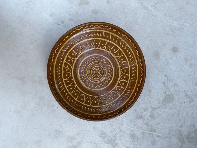 Detalles del productoConjunto de platos decorativos de cerámica con un diseño artesanal.
