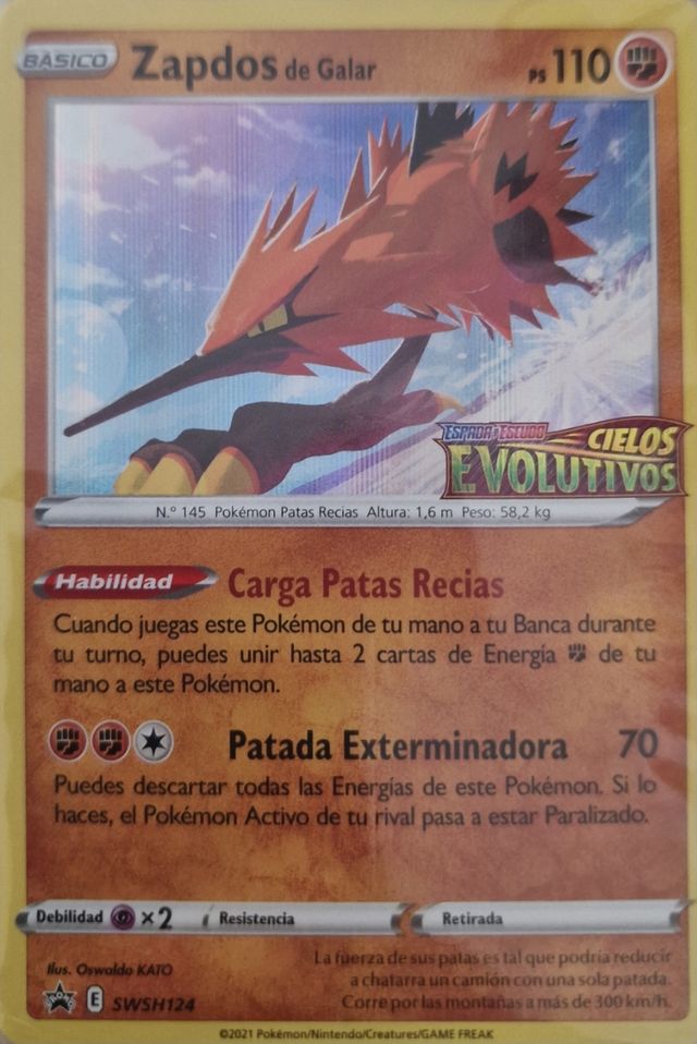 Pack sellado de presentación de la colección de Cielos Evolutivos con la carta promo Zapdos de Galar