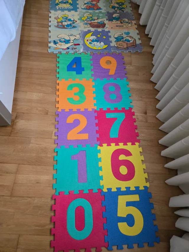 Detalles del productoAlfombra de goma con números del 0 al 9, ideal para el suelo de habitaciones infantiles. Cada pieza tiene un número grande y de colores vivos.