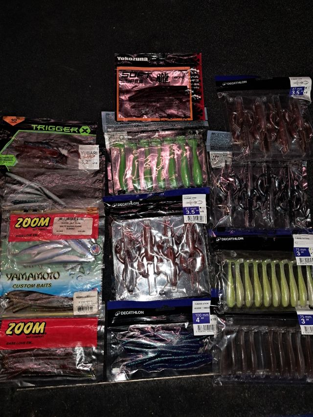 Detalles del productoLote de vinilos de pesca de varias marcas y modelos.