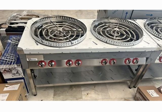 Todo nuestra máquinas son nuevas con garantía, para uso industrial, tenemos fabricación de acero propia, fregaderos, campana de extracción, mesas de trabajo, también tenemos hornos de pizza, a gas y eléctricos, freidoras, vitrina de ingredientes y de tapas, peladora de patata, armario caliente, máquina de helados soft, mantecadora, cortadora de pan, cocinas con horno. Iva y porte no incluido en los precios.
